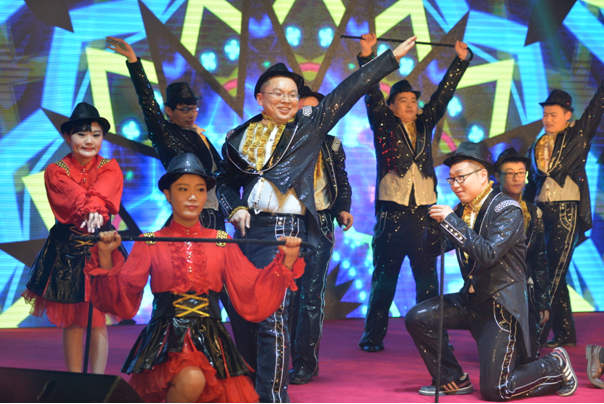 來(lái)自集團(tuán)泰州華澤置業(yè)的員工以喜慶熱烈的舞蹈《歡天喜地》拉開(kāi)了整場(chǎng)酒會(huì)的序幕。歌舞、表演唱、魔術(shù)、相聲、小品等節(jié)目輪番登場(chǎng)。整臺(tái)酒會(huì)異彩紛呈,贏得全場(chǎng)觀眾的一致贊嘆。表演唱《時(shí)光的行囊》、相聲《給嘴開(kāi)光》展現(xiàn)了江蘇省建人58年來(lái)心懷國(guó)家富強(qiáng)和民族振興的崇高使命,自強(qiáng)不息,任勞任怨,為我國(guó)城市建設(shè)默默奉獻(xiàn)的精神風(fēng)貌。舞蹈《小蘋(píng)果》、歌舞《新貴妃醉酒》、魔術(shù)《大變活人》、爵士舞《大眼睛》、小品《江蘇省建新聞聯(lián)播》和歌曲《make you feel my love》演繹得美輪美奐,給人以視覺(jué)的享受與心靈的震撼。激光鼓《省建龍》則展示了省建人對(duì)未來(lái)的美好展望,契合了喜迎新春的主題,將整個(gè)晚會(huì)推向了高潮。