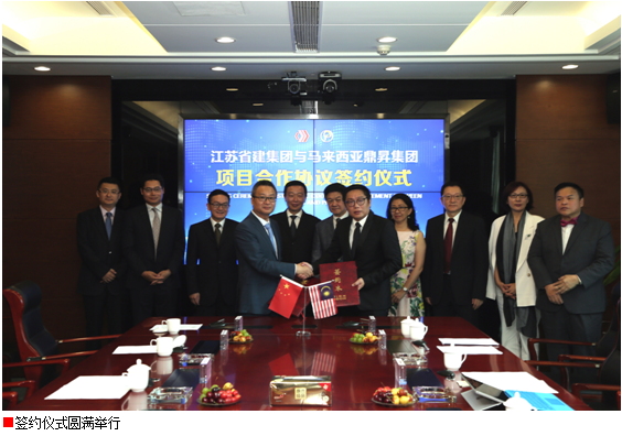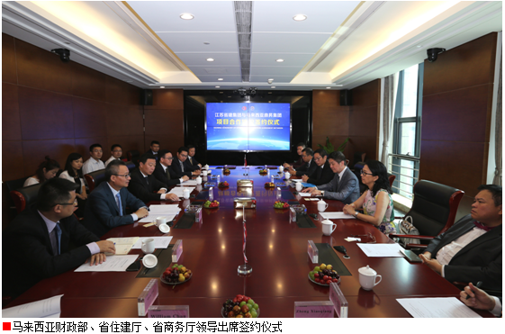 7月17日上午,江蘇省建集團與馬來西亞鼎昇集團就馬來西亞80億元人民可負(fù)擔(dān)房屋項目舉行合作簽約儀式。馬來西亞財政部副部長拿督李志亮及夫人拿汀李善純、馬來西亞鼎昇集團董事長拿督賴俊瀚,江蘇省住房城鄉(xiāng)建設(shè)廳黨組書記顧小平、江蘇省商務(wù)廳副廳長朱益民、江蘇省商務(wù)廳外經(jīng)處處長陸堅、江蘇省建筑管理總站站長李震、江蘇省建集團總裁仇天青等出席儀式。